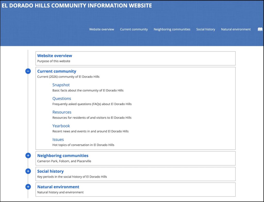 The EDH community information project is a structured, DITA-based local knowledge base for El Dorado Hills, California, published using the Oxygen WebHelp Responsive format. It is designed so residents, visitors, and local organizations can explore trusted, well-organized information about the community.